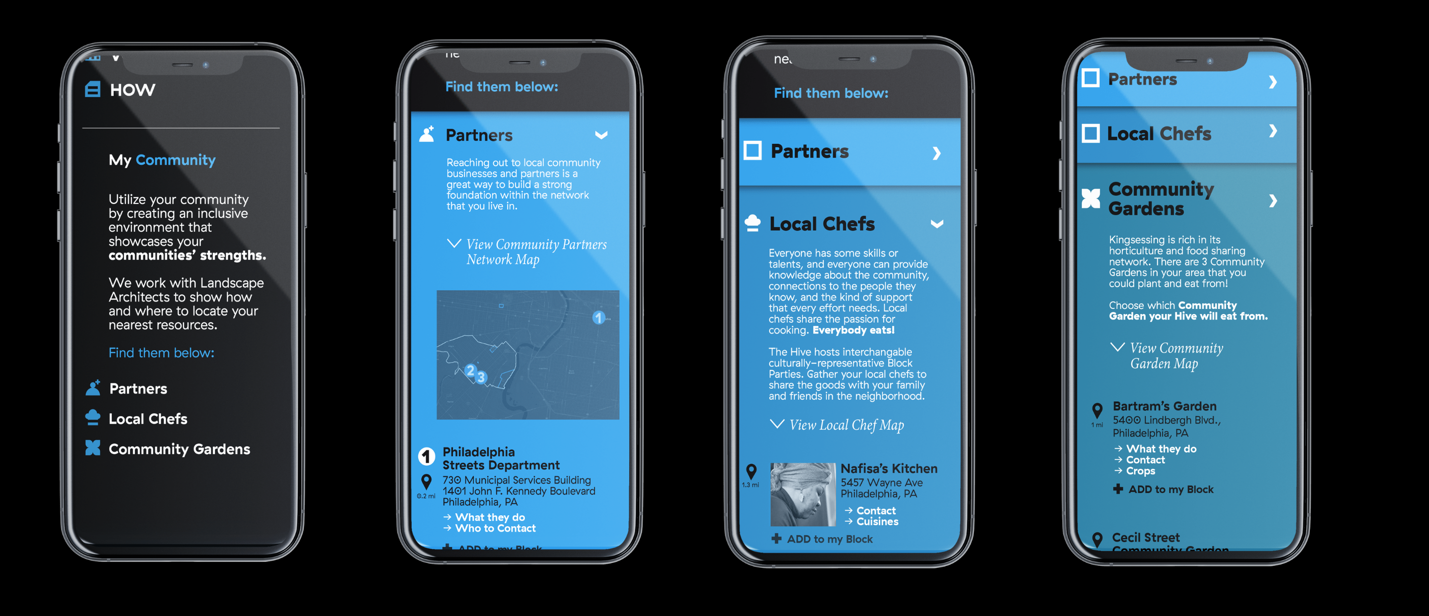 We then created the HIVE, the block party catalyst that showcases your community’s strengths and highlights it’s already existing networks. HIVE also provides the opportunity to empower local businesses, chefs and gardeners to culminate these assets all into a culturally enriched block party, that might look something like this: